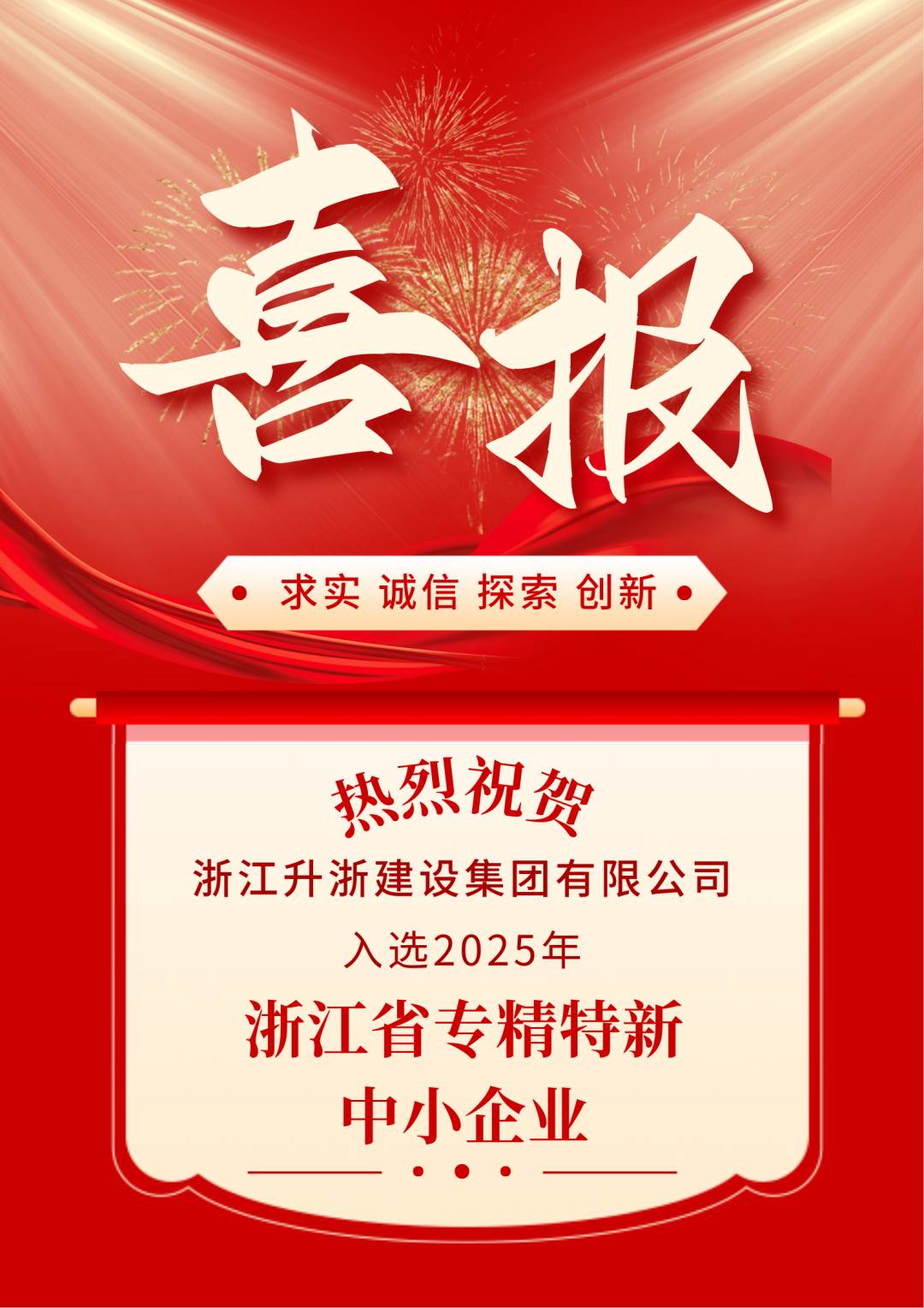 年末添喜!浙江升浙建设集团有限公司成功入选2025年第二批浙江省专精特新中小企业认定名单
